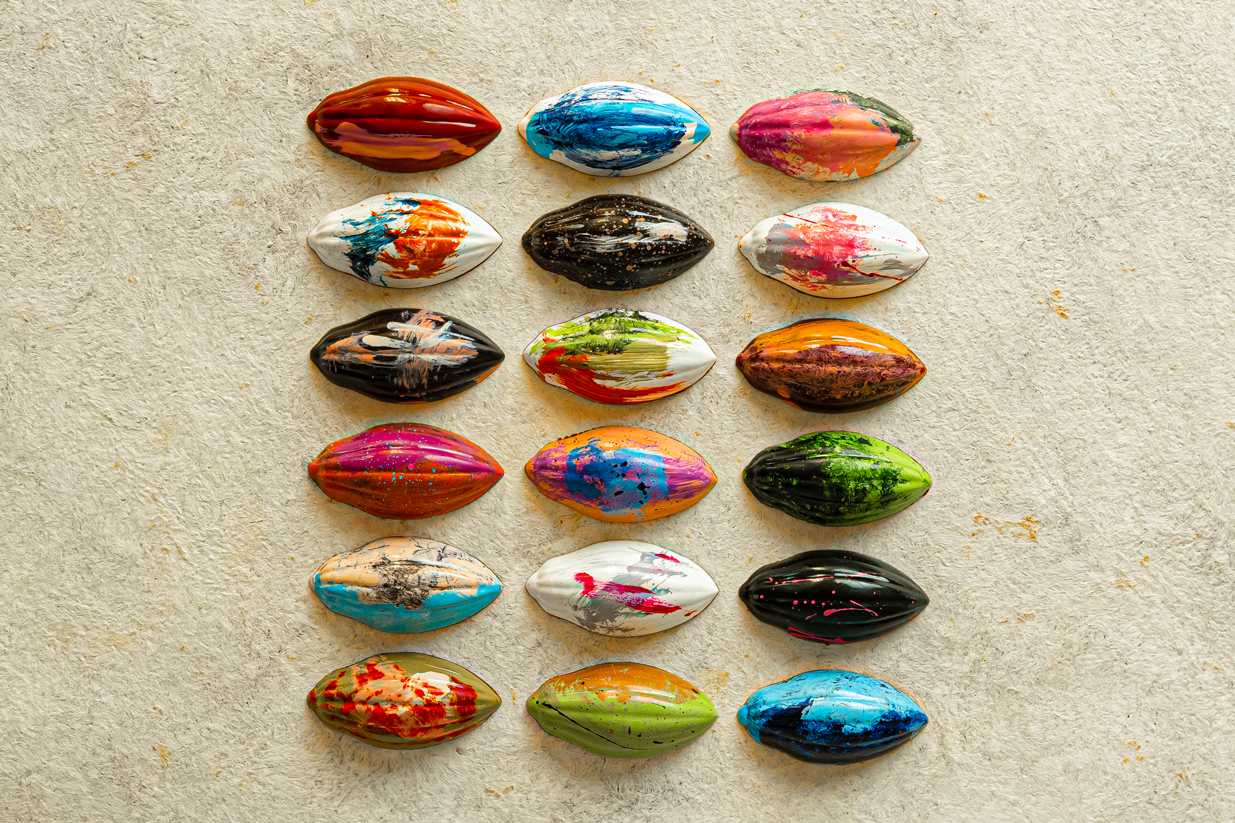 Creamos constantemente colecciones distintas e irrepetibles manteniendo la esencia de cada sabor. Cada chocolate se realiza al momento de recibir el pedido y se decora de forma independiente por la creatividad de nuestros artesanos.